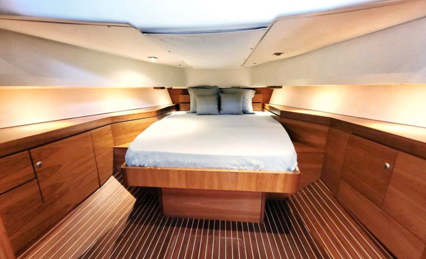 Equipped with Master cabin, Twins and bathroom, hydraulic swiming platform, telescopic bathing ladder, electric bimini integrated in top with stainless steel support