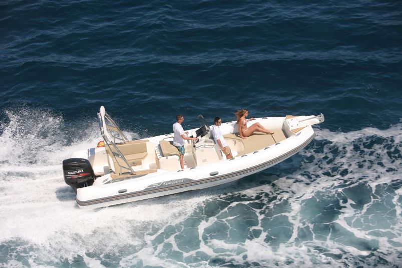 Molinete eléctrico de ancla, arco roll bar inox, toldo parasol,solarium completo proa, GPS/Plotter/Sonda Garmin 7", ducha,mesa picnic, Equipo de música con conexión bluetooth.